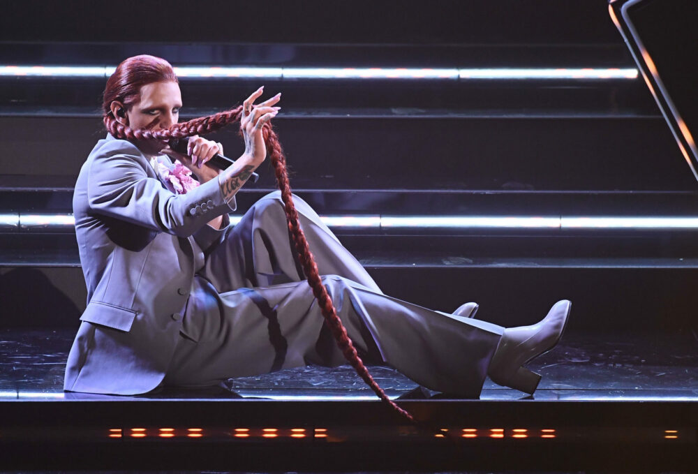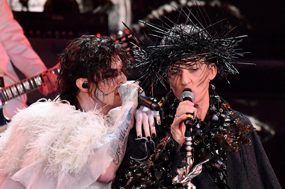 «Non c’erano personaggi quest’anno, non c’era alcuna voglia di fare scalpore, c’era la voglia di portare qualcosa che fosse più di una semplice canzone», premette. «Quando sono stato omaggiato da Amadeus, che mi ha voluto qui, ho voluto pensare a un progetto più complesso che uscisse dalla mia zona comfort di ospite. Ho pensato di fare un viaggio nei generi musicali. Un viaggio attraverso delle rappresentazioni, incarnando non un personaggio, ma l’essenza del genere. Siamo partiti dal glam rock, che è uno dei miei favoriti, che contiene il messaggio di avere il coraggio di essere, poi siamo passati per il rock’n’roll, con un tributo a Mina, donna dal vero animo rock’n’roll, perché volevamo portare un po’ di leggerezza, spensieratezza, un po’ della sensualità degli anni Cinquanta. Anche il bacio fra Claudio Santamaria e Francesca Barra in questo momento storico è qualcosa di forte.